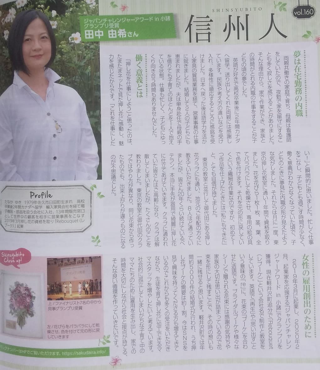 代表の田中です。以前は会社員をしていて、コスト削減のため海外で大量生産された製品を、何層にも重なった代理店へ販売する仕事に携わることに疑問を感じていました。またワンオペでしたので家にいながら、お客様お一人おひとりに喜んでもらえる、生産者とお客様の顔が直接見える仕事を志し、2019年にRebouquetレブーケ軽井沢を立ち上げました。花束の想い出が、押し花を通してあなたの心の中で咲き続けて欲しいと願っております。