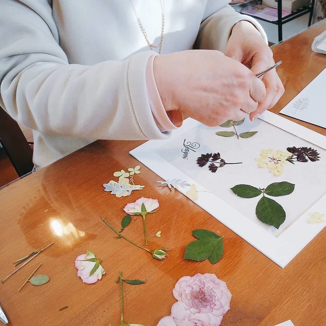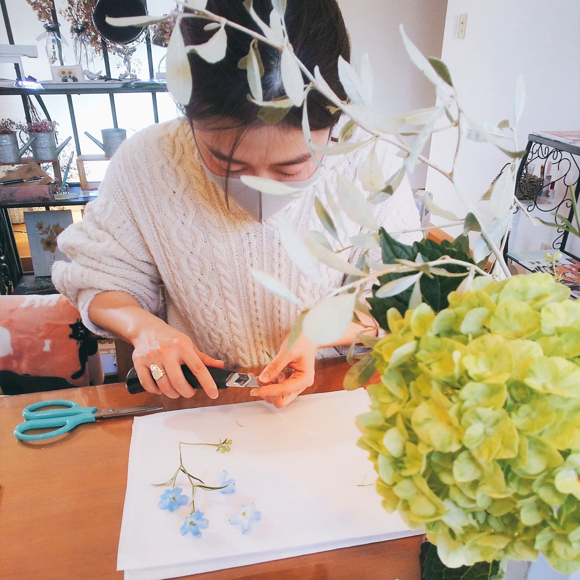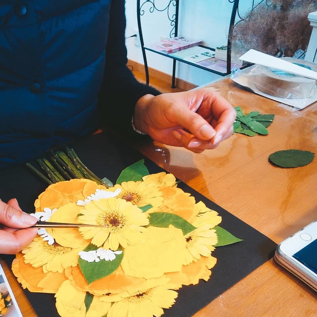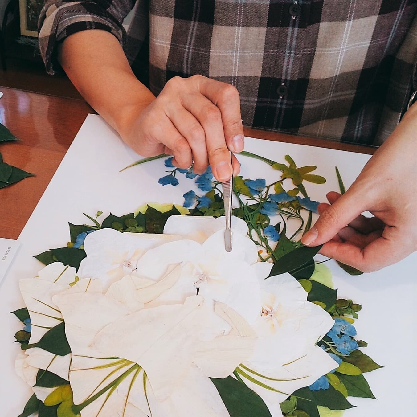 初めてのブーケ作り体験後は押し花デザインの技術が
