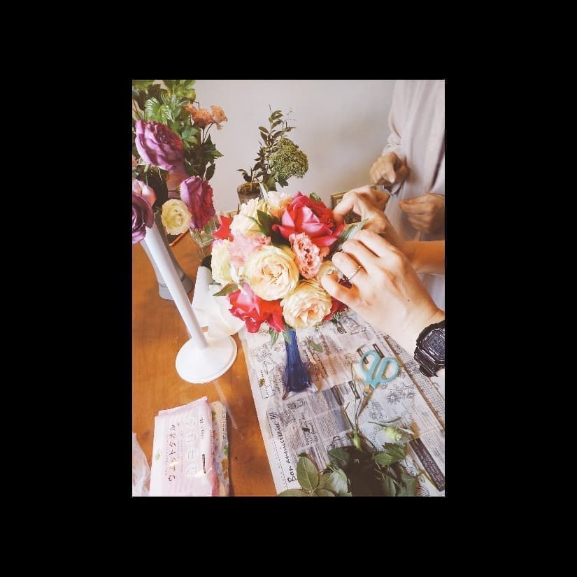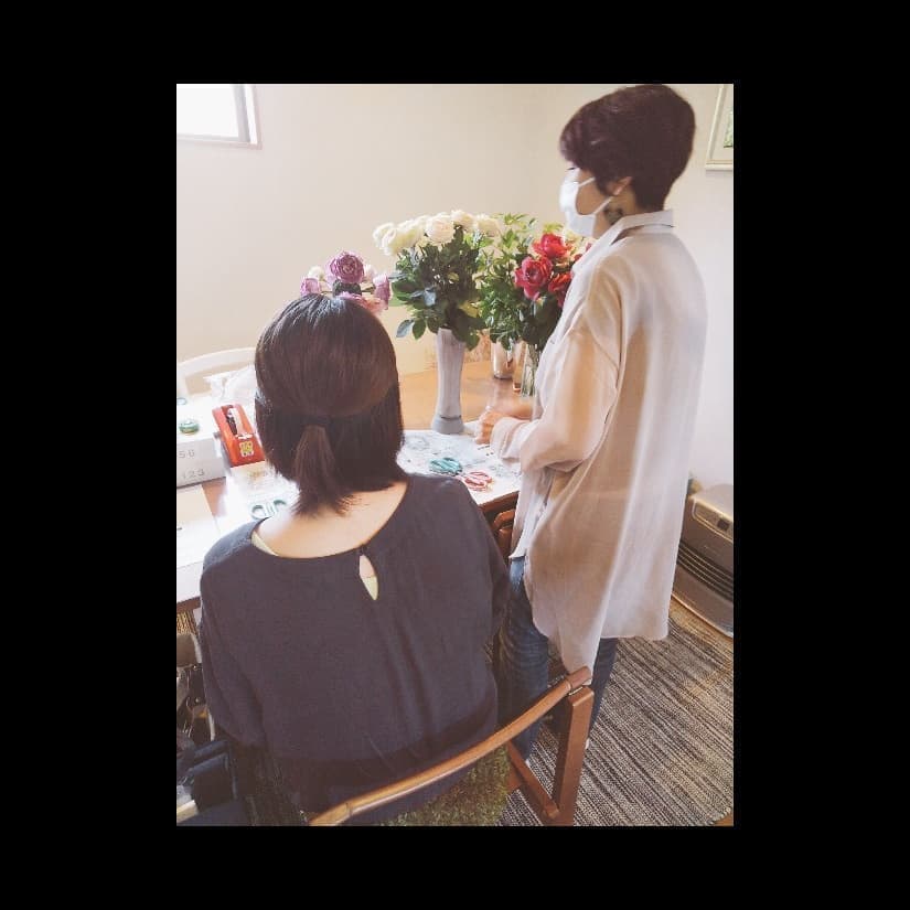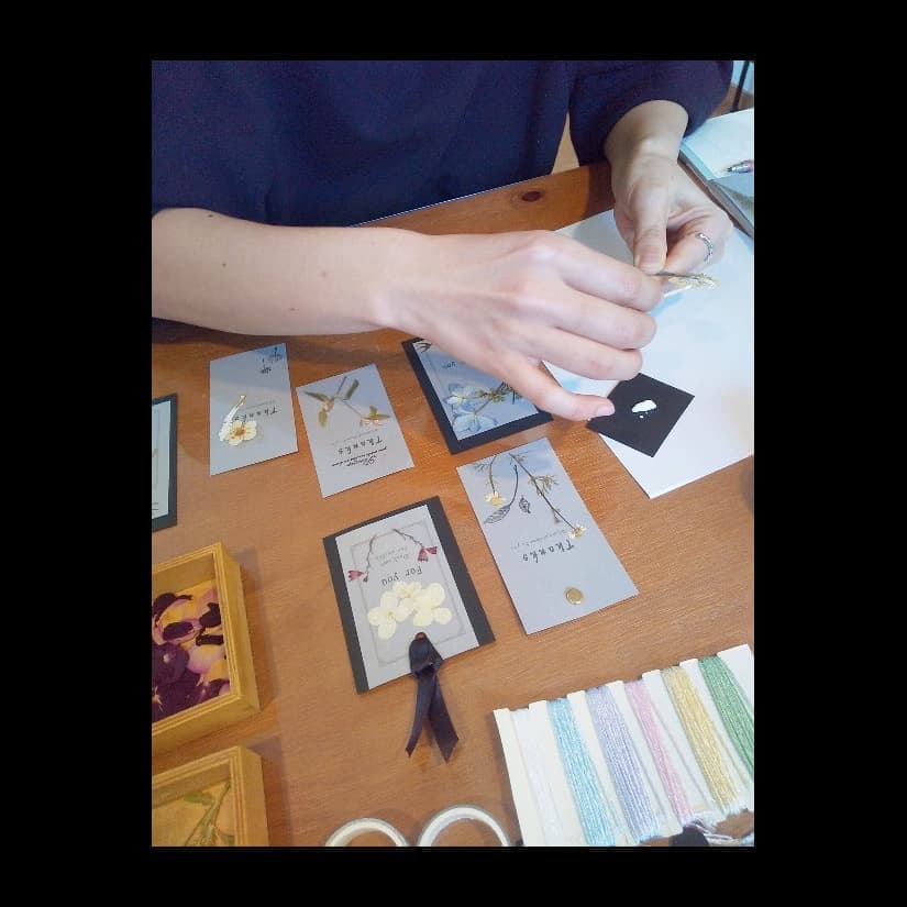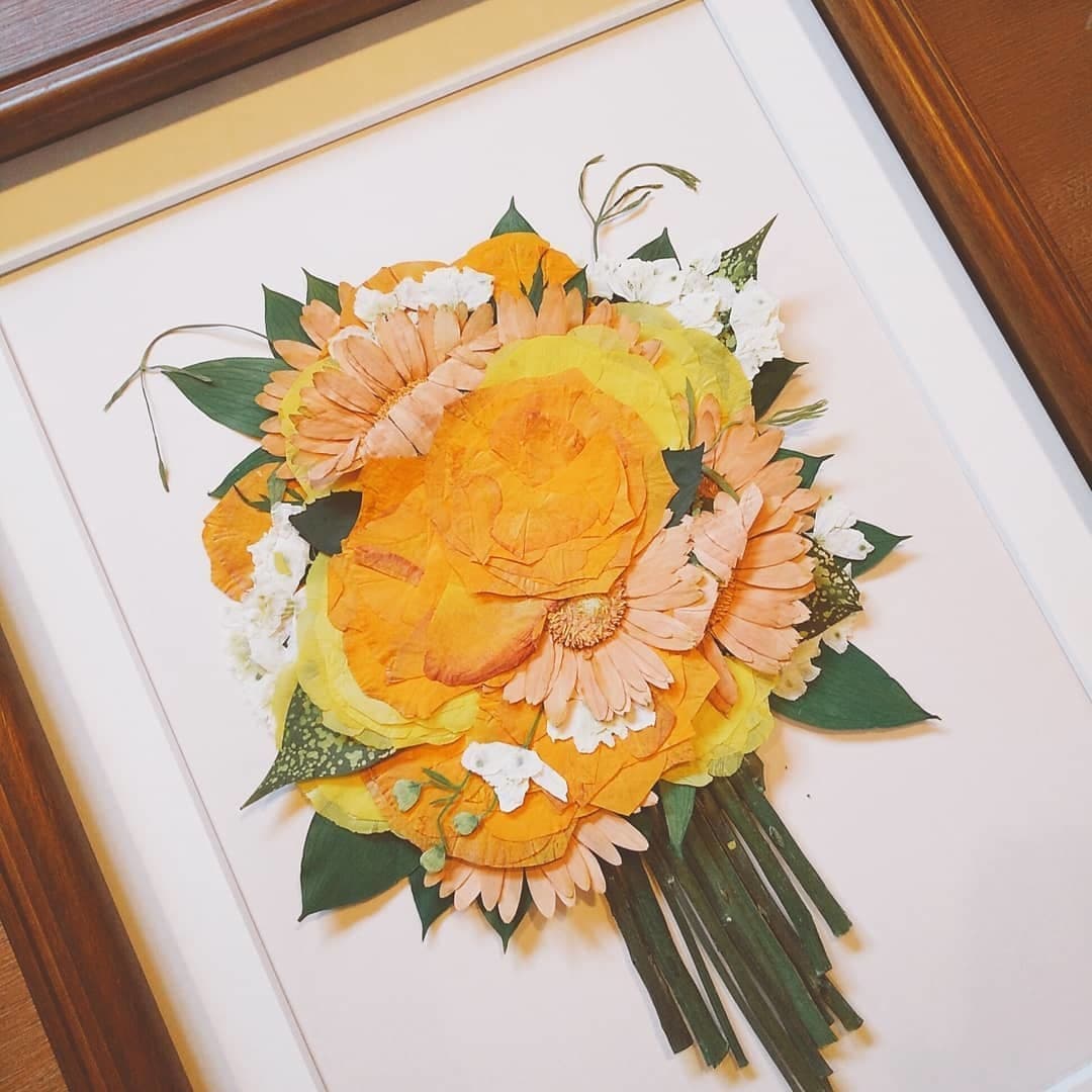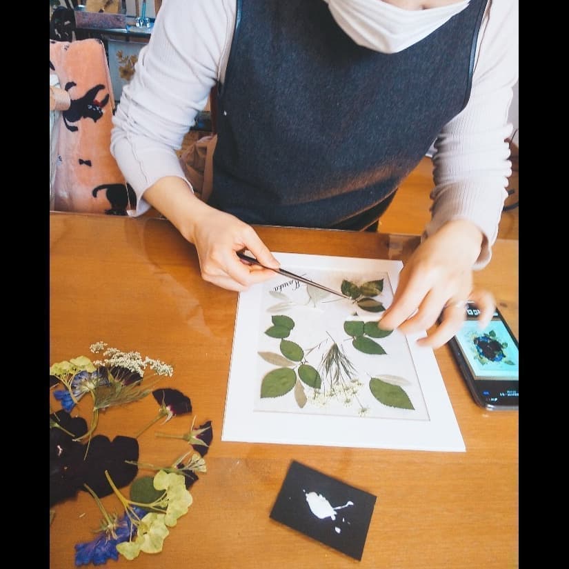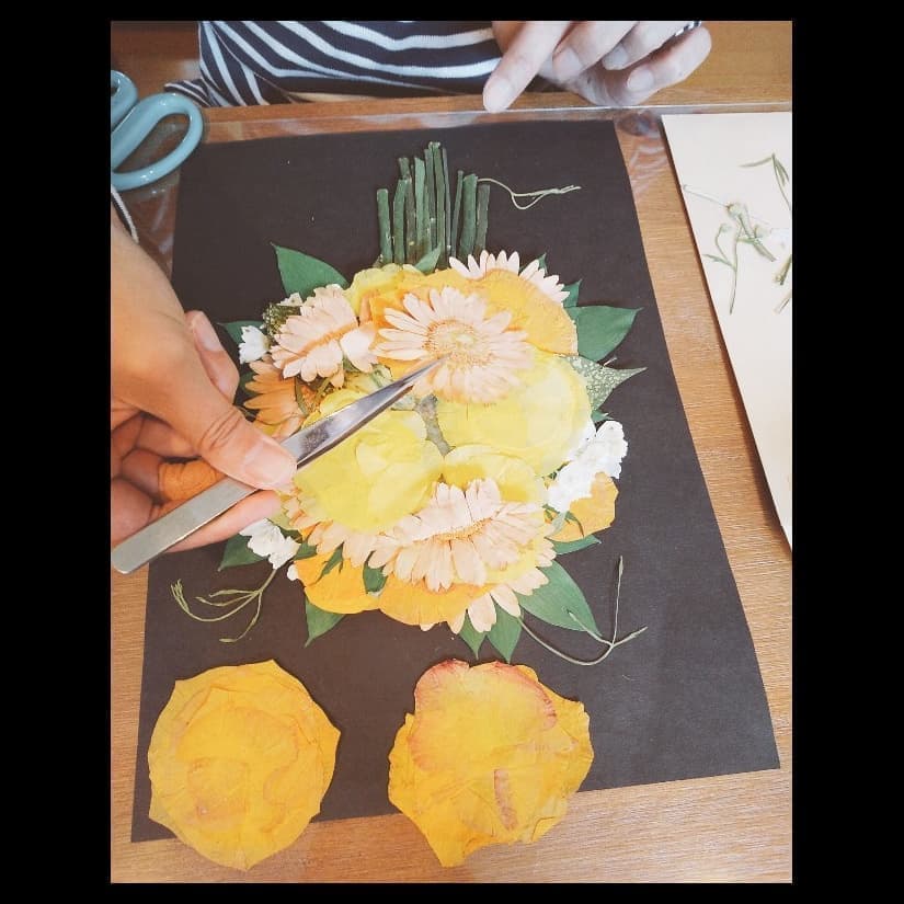 初めてのブーケ作り体験後は押し花デザインの技術が