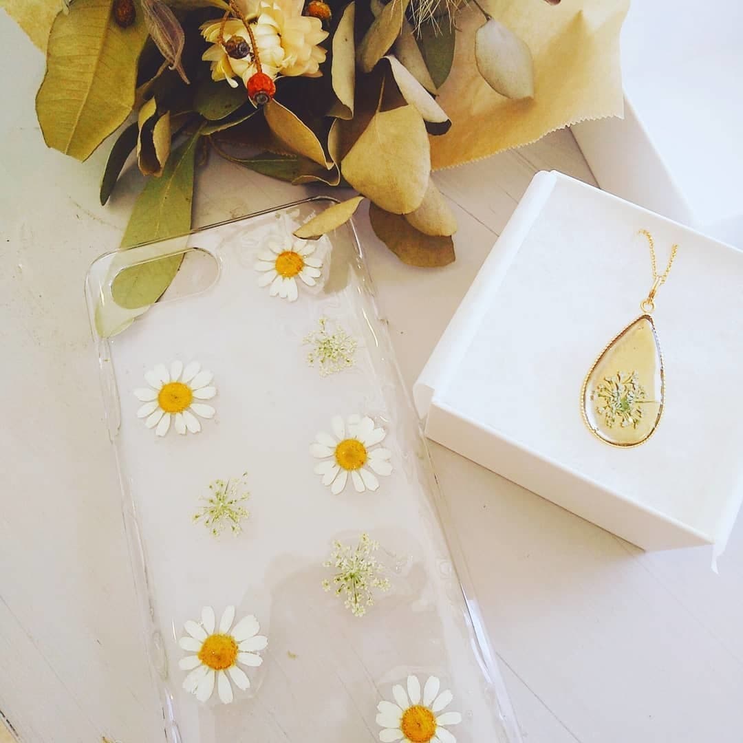 押し花スマホケース、押し花雑貨、押し花額を作ります。